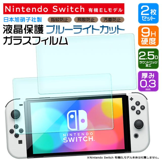 【ブルーライトカット】【安心の2枚セット】 Nintendo Switch 有機ELモデル ガラスフィルム 強化ガラス 液晶保護 飛散防止 指紋防止 硬度9H 2.5Dラウンドエッジ加工 新型 7インチ 任天堂 ニンテンドー スイッチ シート oled model
