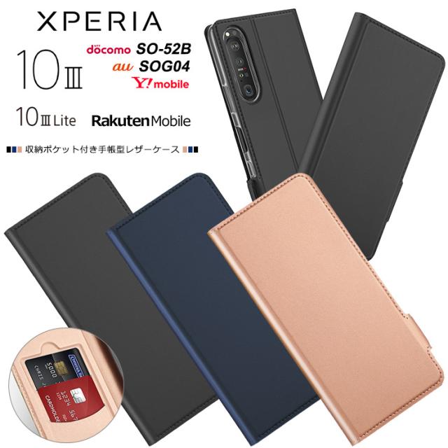 【上質な手触り】 Xperia 10 III / 10 III Lite シンプル 手帳型 レザーケース 手帳ケース 無地 高級 PU サラサラ生地 全面保護 耐衝撃 エクスペリア テン マーク スリー 3 ライト ドコモ so52b au ワイモバイル SIMフリー 楽天モバイル スマホ