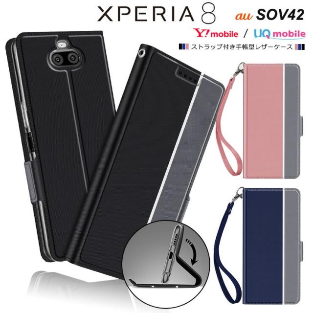 Xperia 8 [ SOV42 ] / Xperia 8 Lite [ J3273 ] シンプル 手帳型 レザーケース 手帳ケース 無地 高級 PU ストラップ付き 全面保護 耐衝撃 au Y!mobile UQmobile エクスペリアエイト エクスペリア8 xperia8 Sony ソニー スマホケース スマホカバー