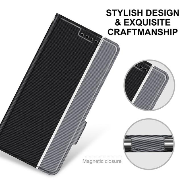 きめ細やかな斜めの凹凸ラインと、お洒落な3色のカラーが織りなすスタイリッシュな手帳型レザーケース。