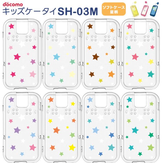 ドコモ キッズケータイ SH-03M 星柄 スター ソフトケース カバー TPU クリア ケース 透明 星 シンプル docomo キッズ ジュニア 見守り sh03m スマホケース スマホカバー 密着痕を軽減するマイクロドット加工 ケース 学校
