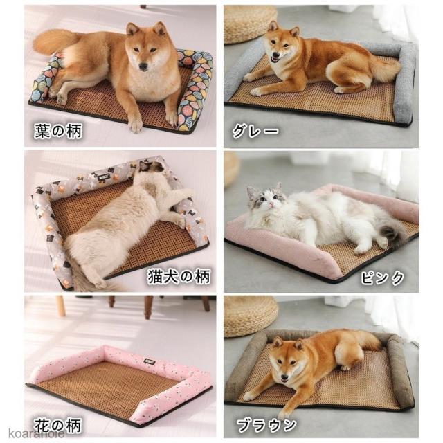クールマット むしろマット ペットマット 枕付き 夏 猫犬用 ひんやりマット クッション 接触冷感 熱中症 藤むしろ 暑さ対策 大中小型犬/猫用 防水加工