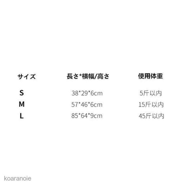| サイズについての説明 | 【サイズ】(長さ*幅さ*枕の高さ)S:38*29*6cmM:57*46*6cmL:85*64*9cm |