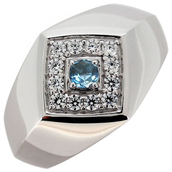 指輪 印台 メンズリング ブルートパーズ 11月誕生石 プラチナ ひし形