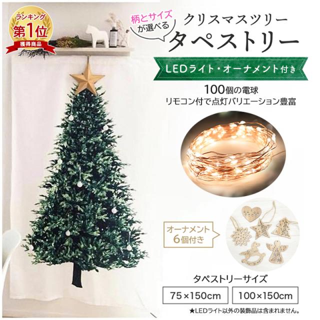 壁掛け クリスマスツリー タペストリー LEDライト付 クリスマス クリスマスタペストリー 全5種 ガーランド 木製オーナメント 壁 デコ 2025 オーナメント北欧 簡単 飾り おしゃれ 150cm 大きい 飾るだけ 送料無料