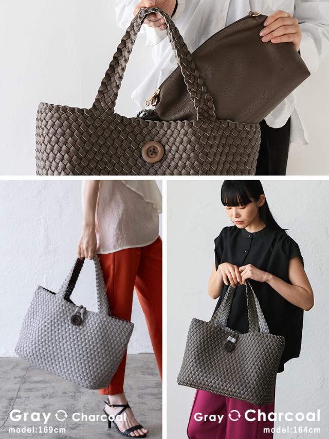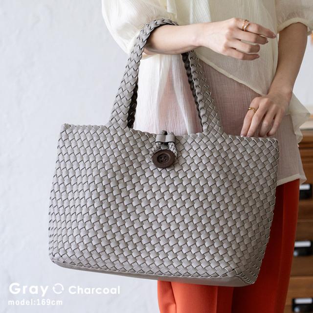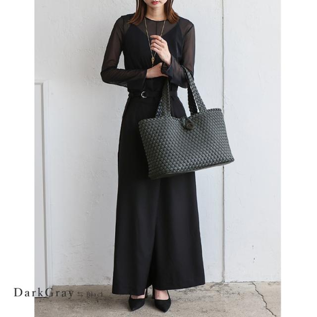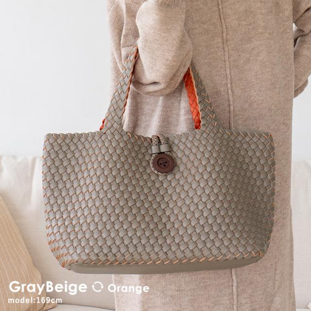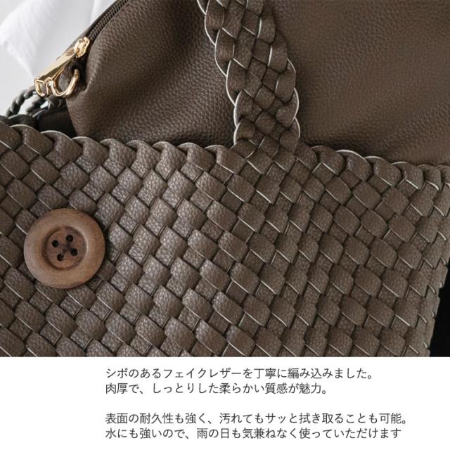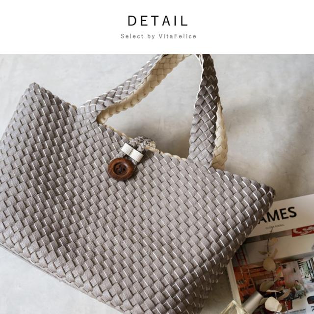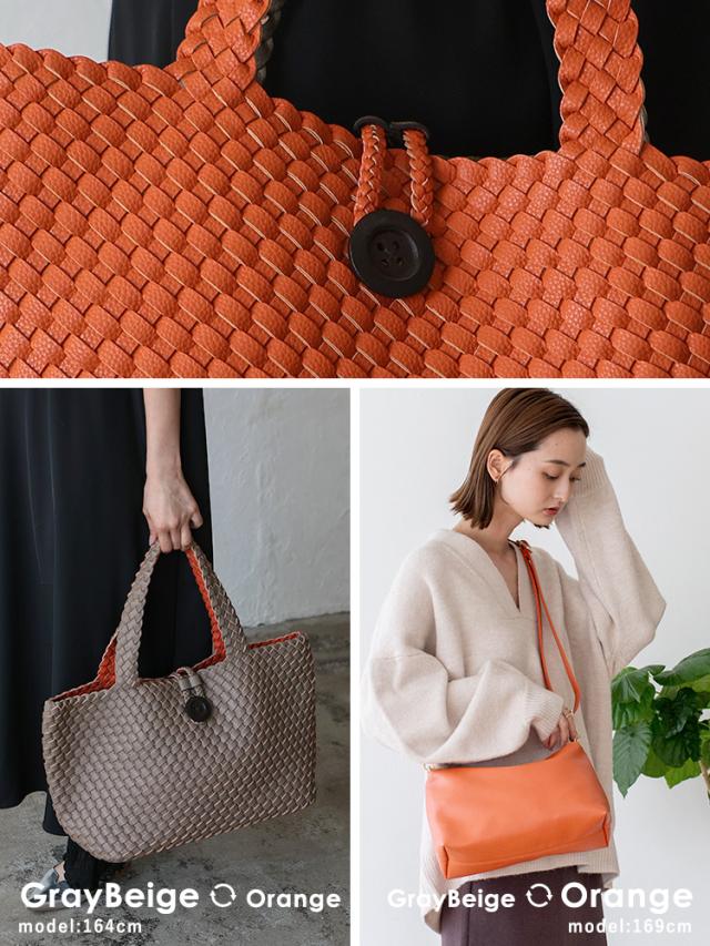柔らかいフェイクレザーを丁寧に編み込み、リバーシブル仕様でファッションに合わせたカラーが楽しめます。