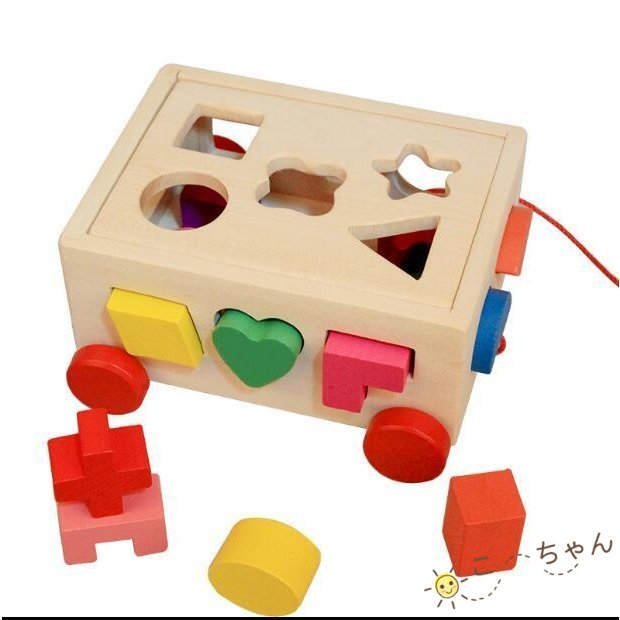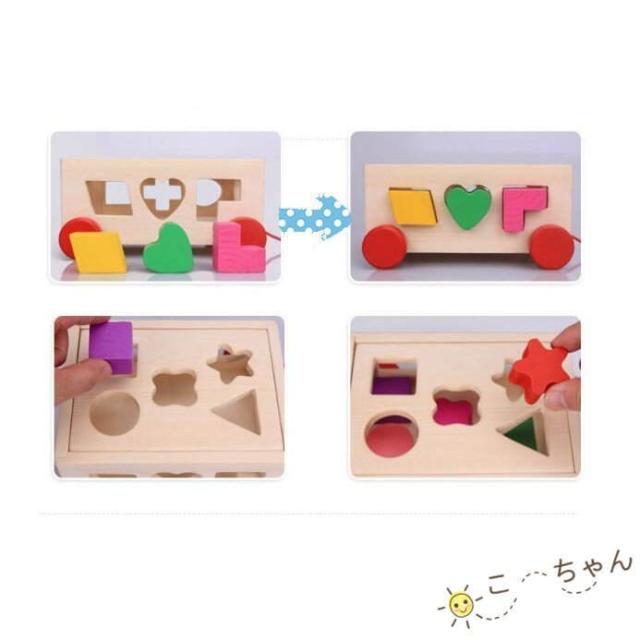 積木 木のおもちゃ 車 色彩 感覚 型はめ 積み木 知育 玩具 知性 想像 認知 形 合わせ 創造力 ロープ 引き車 パズル (積み木の車)