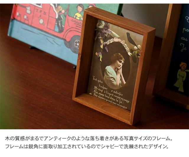 木の質感がまるでアンティークのような落ち着きがある、写真サイズのフレーム。