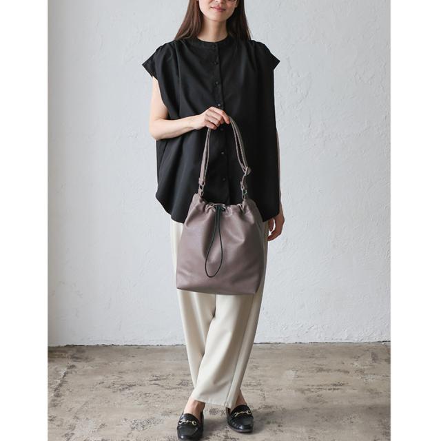 開閉部分はストッパー付きの巾着仕様で、お好みに合わせてフォルムの変化を楽しめます。