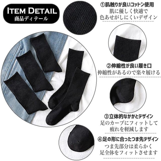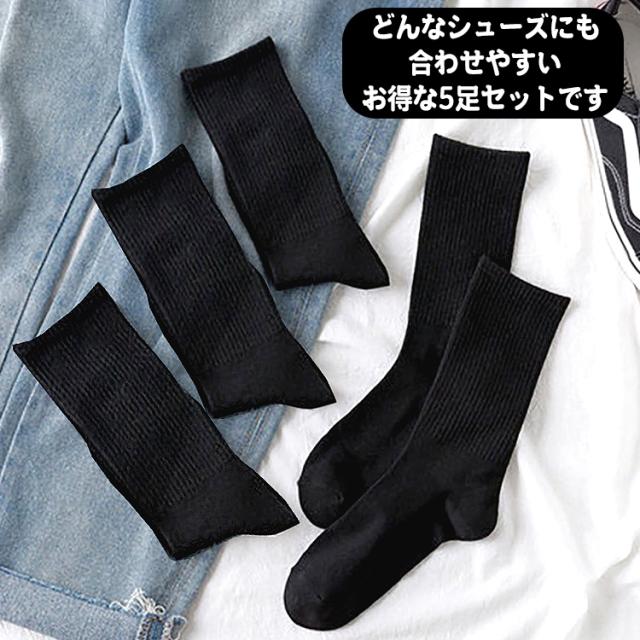 靴下 レディース セット かわいい ソックス 黒 5足セット ブラック ハイソックス 無地 おしゃれ シンプル コットン ポリエステル オフィス ビジネス プライベート プレゼン ショートソックス 女性 春 秋 冬 秋冬 オールシーズン