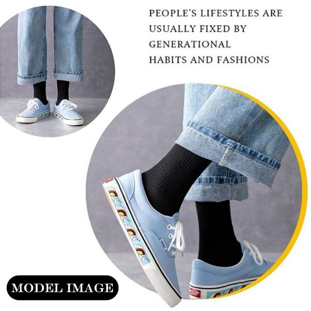 黒の無地ソックスでちょうどいい長さなので、スニーカーやブーツ等色んなシューズにも合わせやすいです