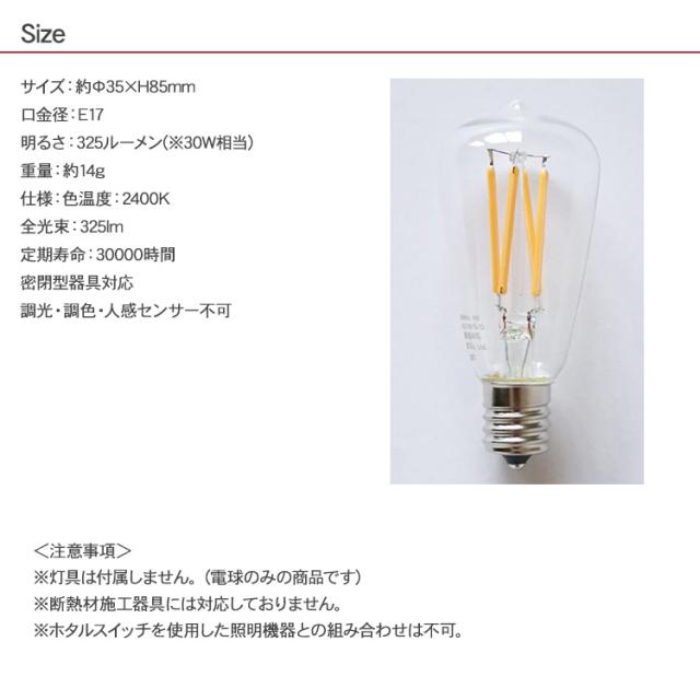 ミニエジソン型LED電球 口金径E17 HS3190 LED 電球 エジソンランプ ペンダントライト 天井照明 北欧 スタンドライト