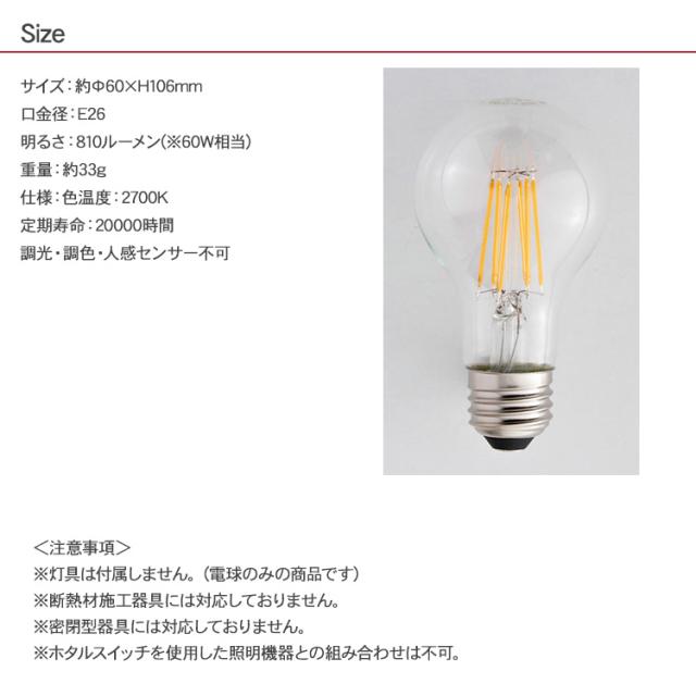 温かみのあるフィラメントがお部屋を優しく照らす E26電球