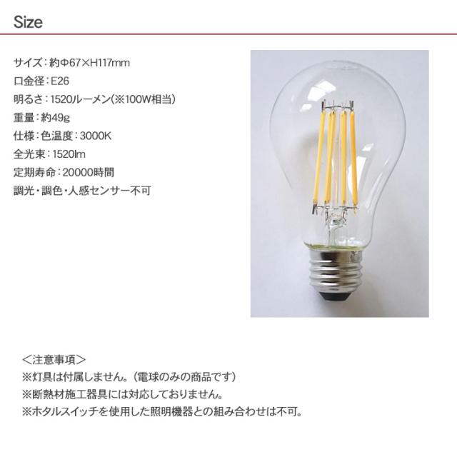 温かみのあるフィラメントがお部屋を優しく照らす E26電球