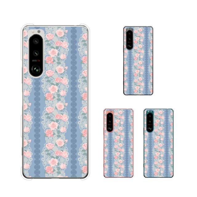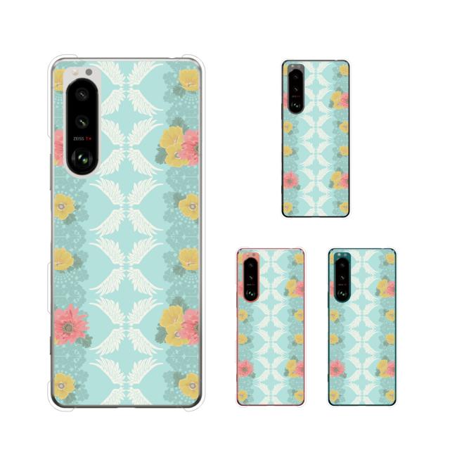 Xperia 5 III (au SOG05 / docomo SO-53B / SoftBank) スマホ ケース ハード カバー 花柄34 羽 水色