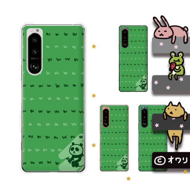 Xperia 5 III (au SOG05 / docomo SO-53B / SoftBank) スマホ ケース ハード カバー オワリ 「w草むしりするパンダw」 グリーン