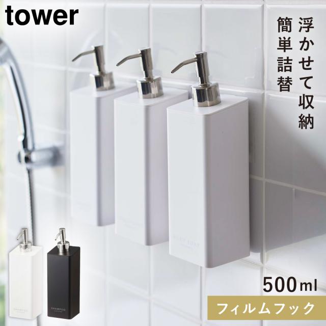 ディスペンサー ボトル シャンプー 液体 tower タワー 山崎実業 バスルーム フィルムフック 浮かせる収納 ホワイト ブラック フィルムフックツーウェイディスペンサー タワー シャンプー