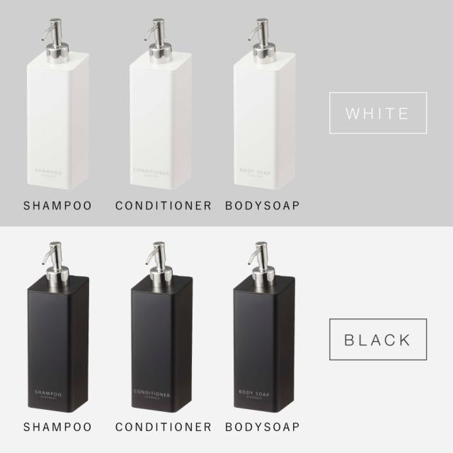 「SHAMPOO」「CONDITIONER」「BODYSOAP」の3種類、カラーはホワイトとブラックからお選びいただけます。