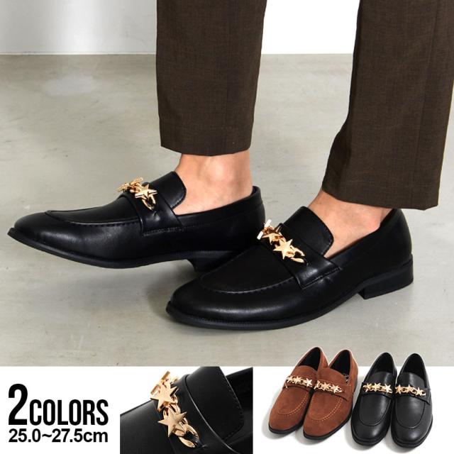 ローファー メンズ 靴 シューズ モカシン スリッポン ビット ゴールド チェーン スター 星 スウェード スエード スムース PUレザー 合成皮革 ブラウン ブラック 黒 カジュアル きれいめ モード ビジネス 大人 きれいめ ファッション 秋 冬 2021 即日発送 [APT366-4]
