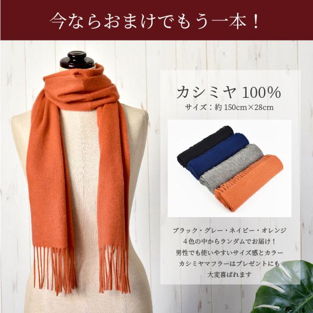 - この値段で、大判マフラーと、おまけで、マフラーが、もう1本ついてくると言うので、カシミヤだけど、どんな品物だろうと不安でしたが、「温かく、肌触りも良い」と旦那が、喜んで毎日、使用しています。購入して良かったです。