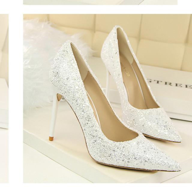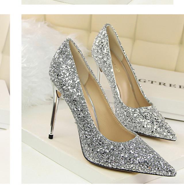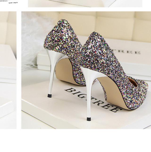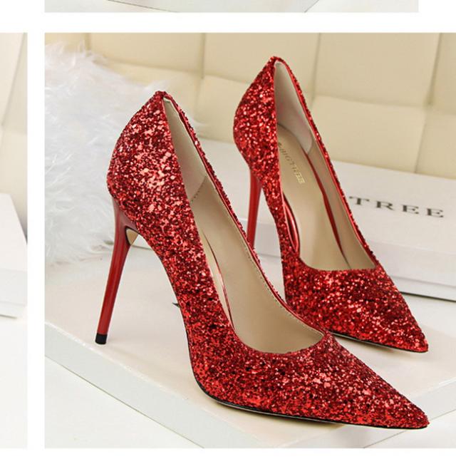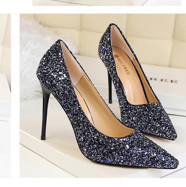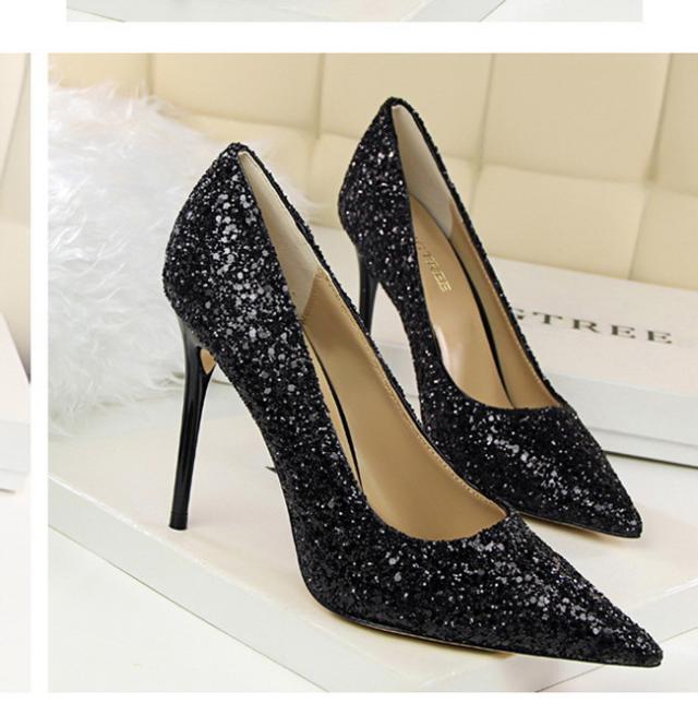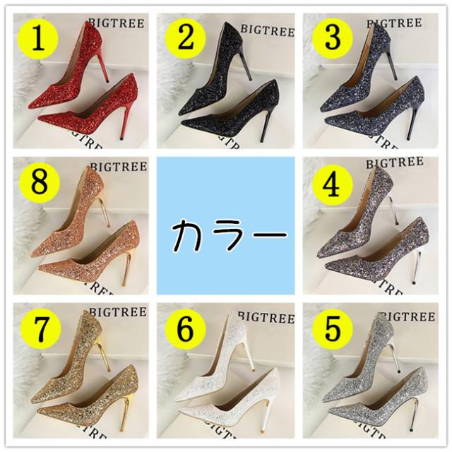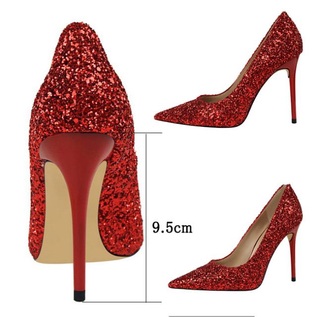 【在庫処分】9.5cmUP 大きいサイズ 走れるパンプス ハイヒール レディース 美脚 ポインテッドト キラキラ 結婚式 宴会 パーティー ピンヒール フォーマル オフィス 通勤