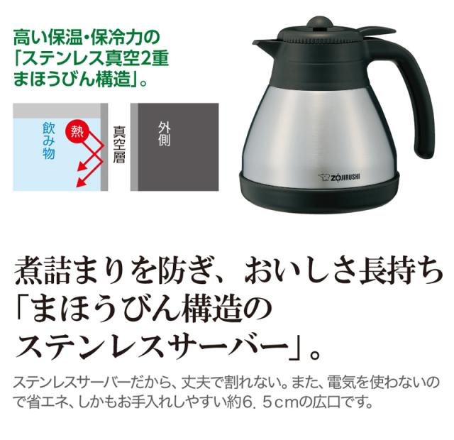 ・まほうびん構造のステンレスサーバーなので、煮詰まりを防ぎ、おいしさ長持ち。