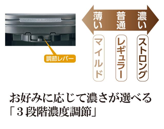 - お好みに応じてコーヒーの濃さが選べる「3段階濃度調節」