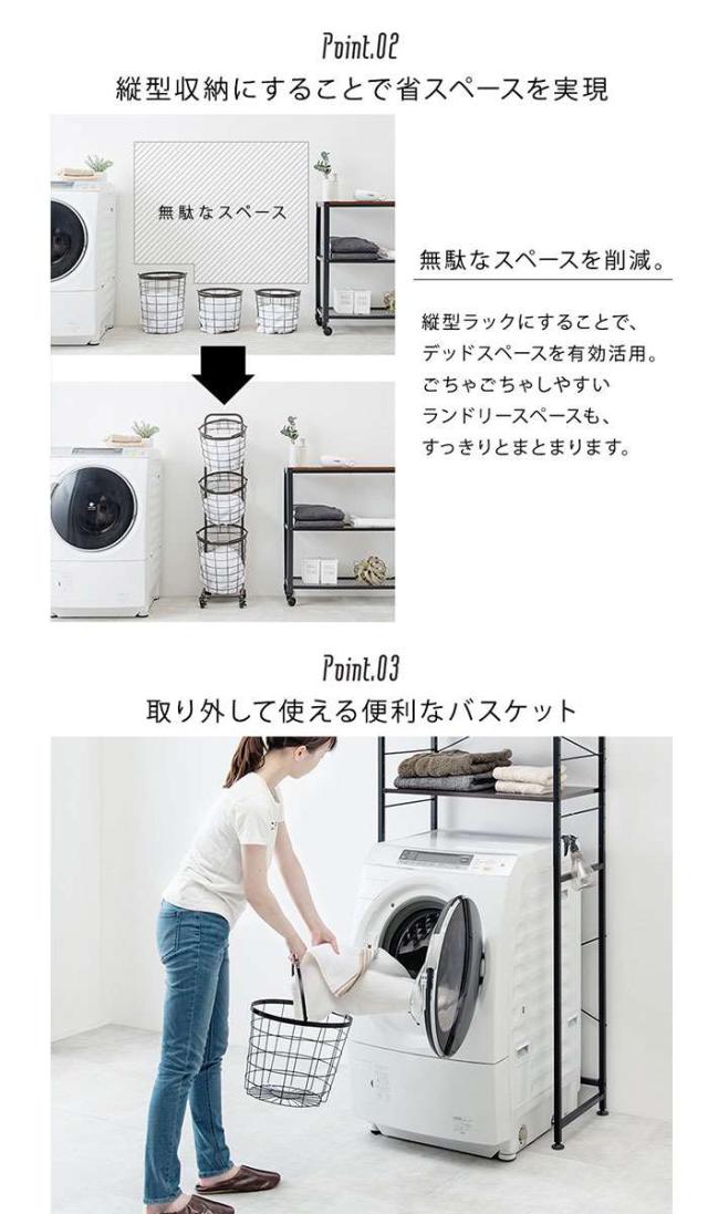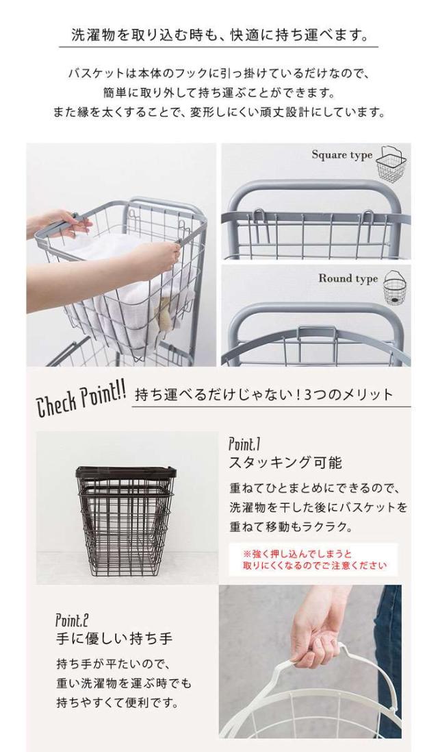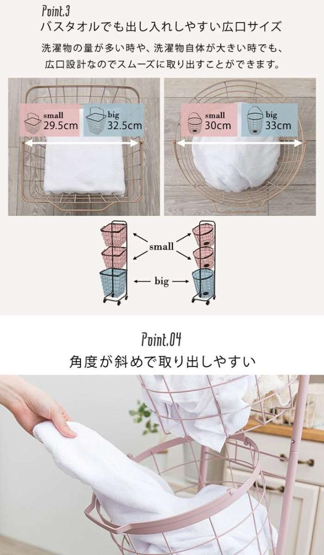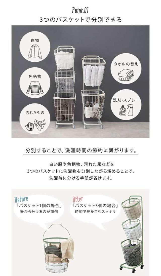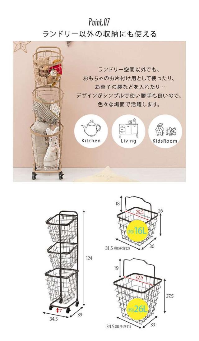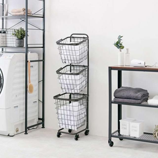 ■商品名:ランドリーラック 3段ランドリーラック 角型 スクエア バスケット 約16L 26L 洗濯かご 分別 縦型収納 キャスター付き カラー ランドリー