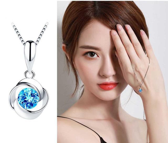 定価25980円 ブルー スワロフスキーネックレス 1粒ネックレス レディースネックレス ネックレス レディースネックレス プラチナ ブルー