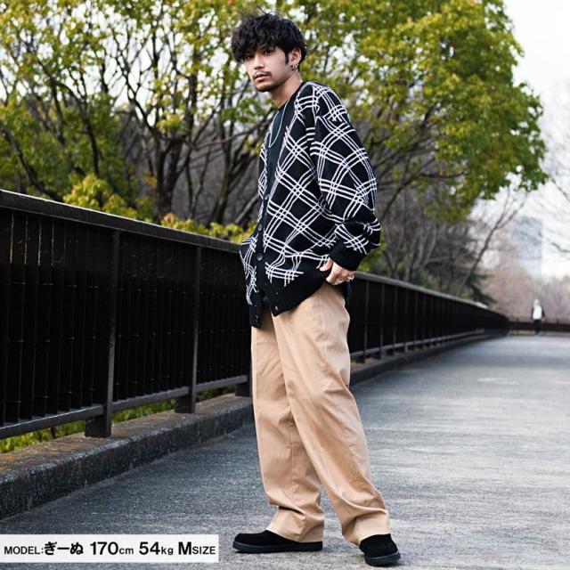 M:着丈107股上30股下76ウエスト39ヒップ51わたり(もも幅)26膝幅20裾幅18L:着丈108股上31股下77ウエスト40ヒップ52わたり(もも幅)27膝幅21裾幅19
