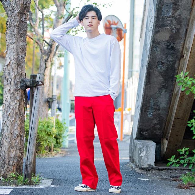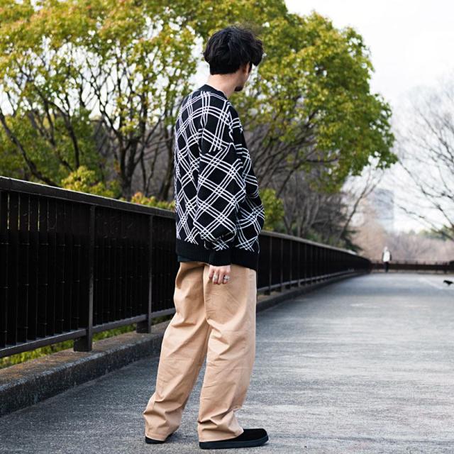 太めのシルエットながらフロントに入ったタックと程よい丈感で綺麗なパンツラインを実現しました。