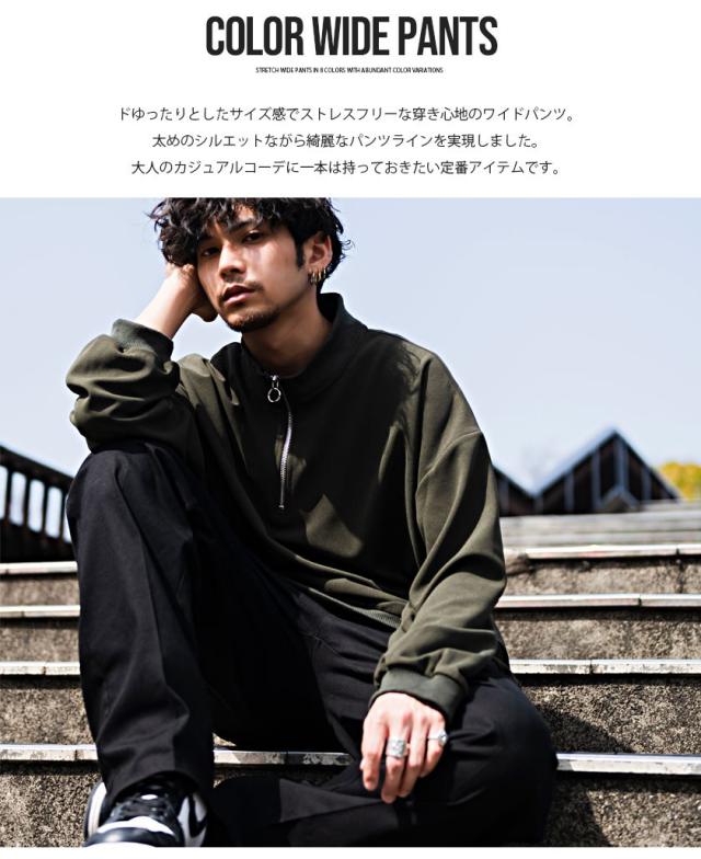 ワイドパンツ メンズ ボトムス カラーパンツ カラパン スラックス ストレート ワンタック 無地 シンプル ゆったり ベージュ ブラック ブルー グリーン オレンジ パープル レッド イエロー 黒 M L XL CavariA キャバリア 春 即日発送 [CAK21-12]