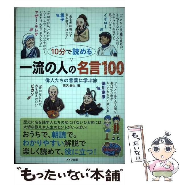 商品名:【中古】 10分で読める 一流の人の名言100 偉人たちの言葉に学ぶ旅 (まなぶっく) / 西沢 泰生 / メイツ出版 [単行本(ソフトカバー)]【メール便送料無料】