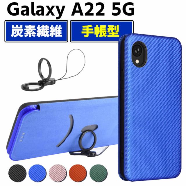 Galaxy A22 5G SC-56B 手帳型 薄型 カーボンファイバー 炭素繊維カバー TPU 保護バンパー 財布型 マグネット式 カード収納 落下防止 ホルダ 横開き ケースギャラクシーA22