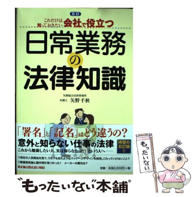 商品名:【中古】 会社で役立つ日常業務の法律知識 これだけは知っておきたい 5訂 / 矢野千秋 / 清文社 [単行本]【メール便送料無料】