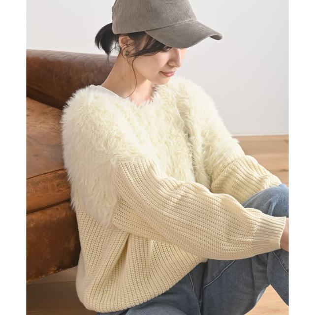 ふわふわのシャギーニットが女性らしいプルオーバー。