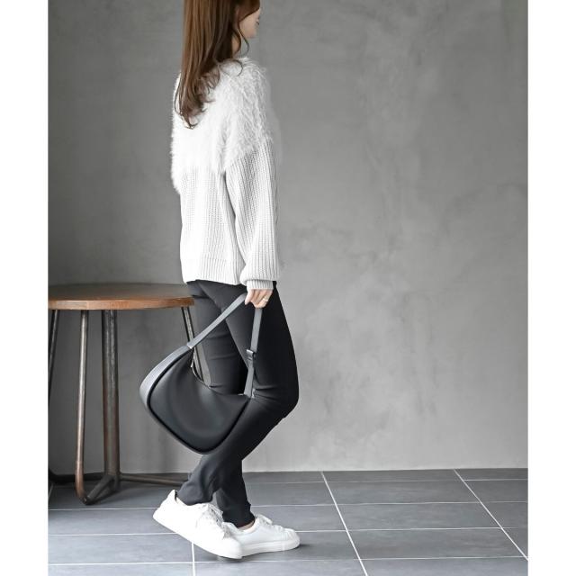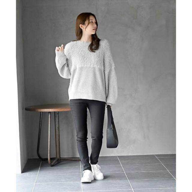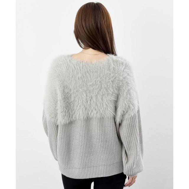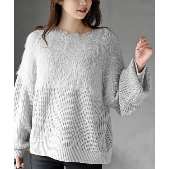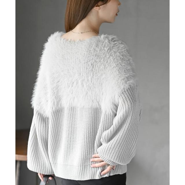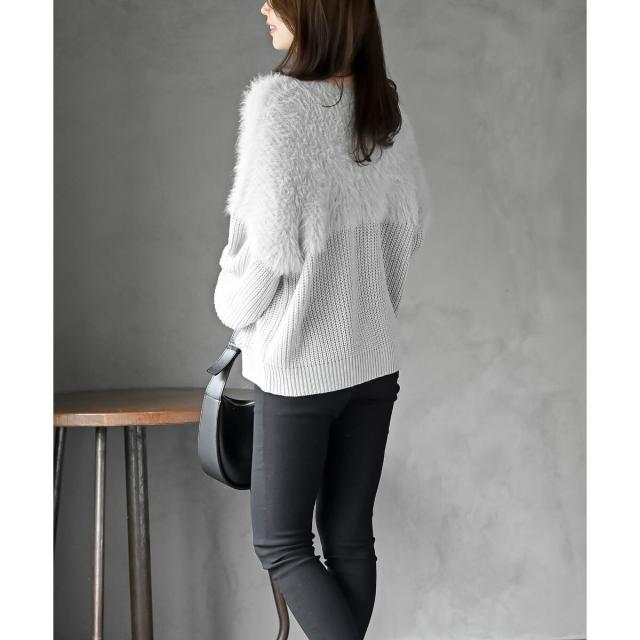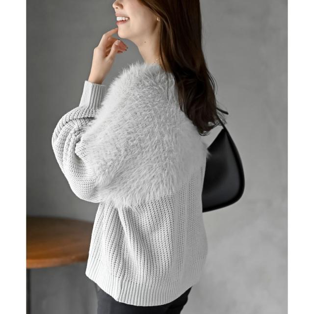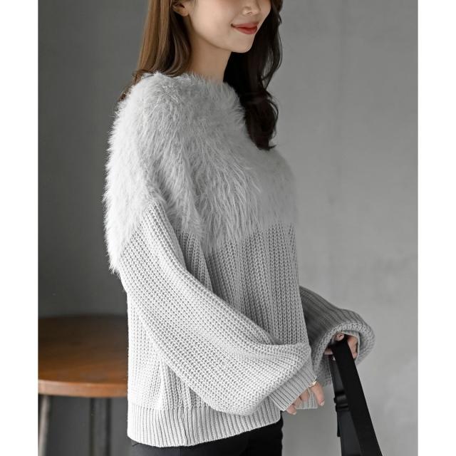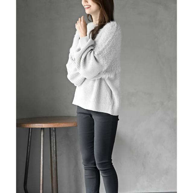 ざっくりとした畦編みニットと切り替えることで甘さを抑えた大人っぽいデザインになっています。