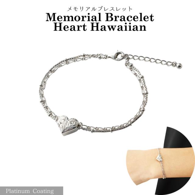 メモリアルジュエリー ハートハワイアン シルバー プラチナコーティング メモリアルブレスレット 遺骨