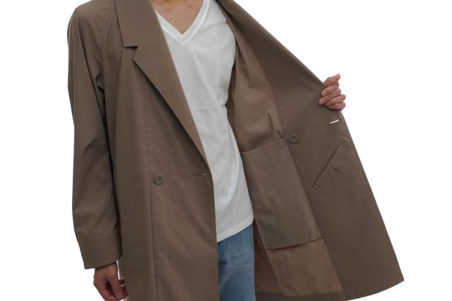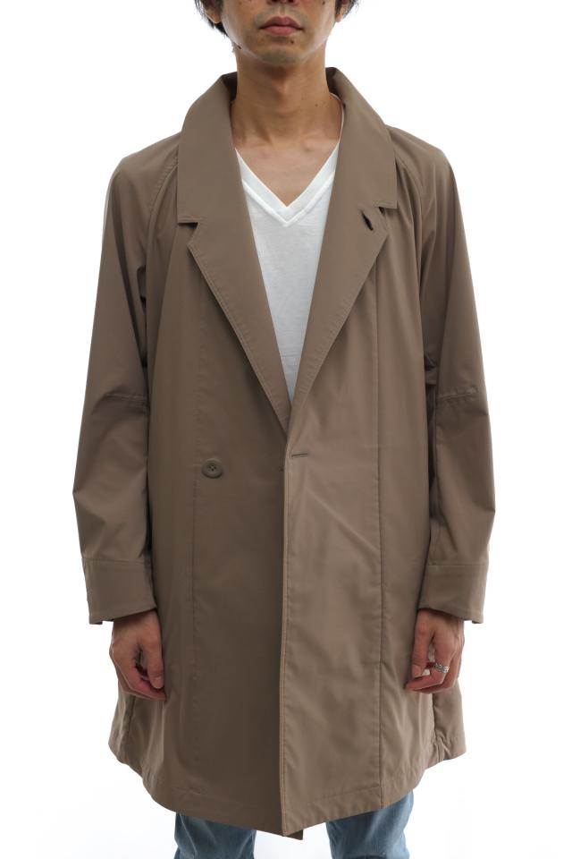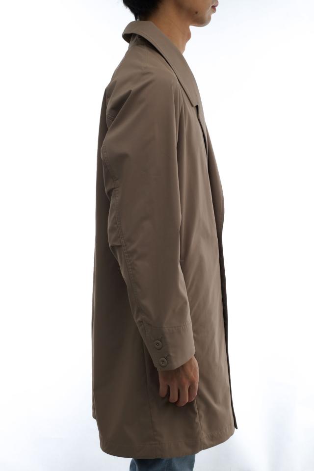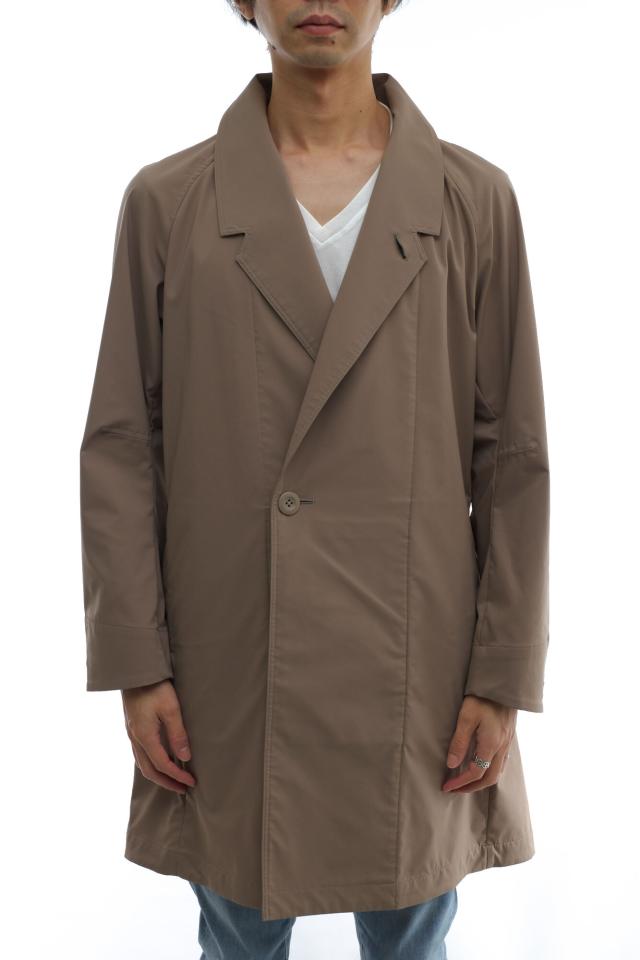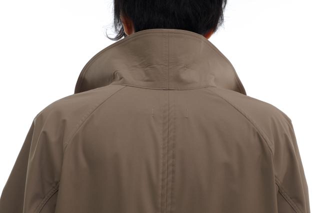 着丈は長めで今季シーズンに活躍する高機能かつクラシカルな見た目が印象的なガウンコート。日本のファブリックメーカー 第一織物のPliantexを使用、撥水性、耐水性にも優れ非常に軽量でマットな質感も印象的です。腹部のボタンやトップのボタンを留めたり、またオープンにすることでシルエットに変化し様々な着こなしが出来ます。