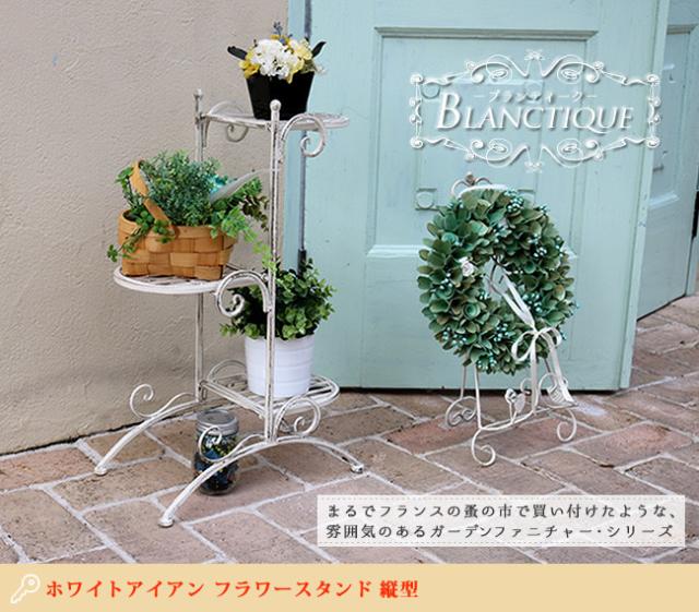 BLANCTIQUE ブランティーク フラワースタンド 縦型 (スタンド花 スタンド台 曲線 屋内 屋外 ガーデニング 庭 アンティーク 清潔感 シャビー 上品 高級感 アイアン インテリア ハンドメイド フレンチ 白 ホワイト おしゃれ おすすめ)