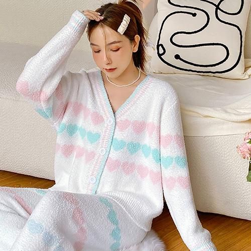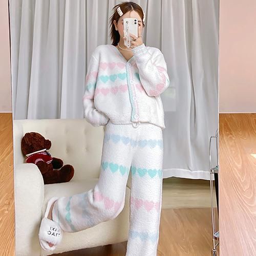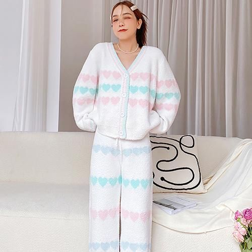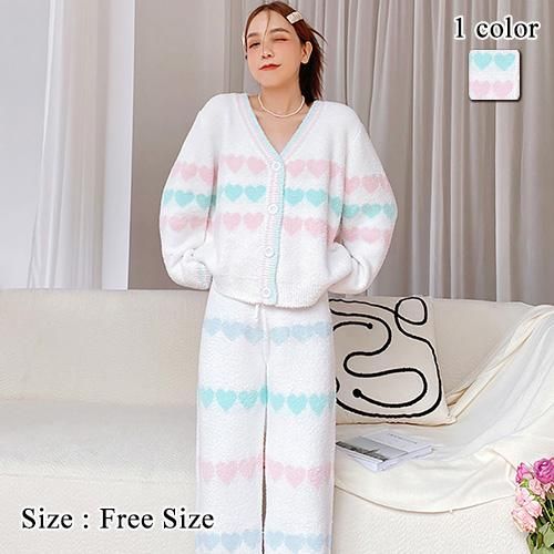 ふわっともこもこハートがいっぱいボーダーのルームウェア(ROOMWEAR)。