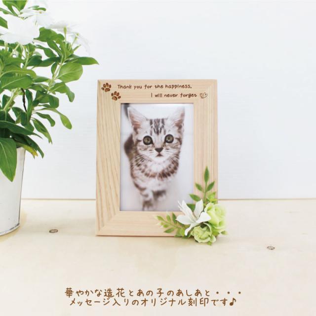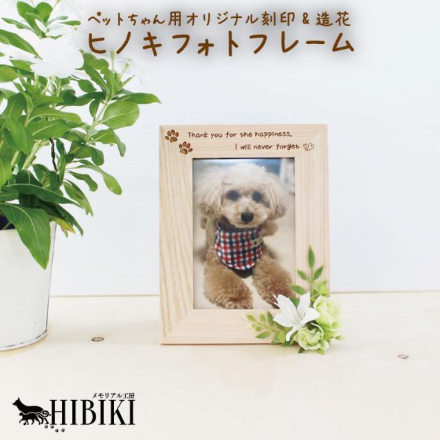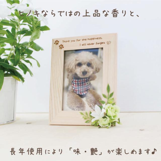写真立て ペット用 メモリアルフォトフレーム 刻印 肉球 造花つき 檜 L判 ヒノキ 縦用 ペット供養 ペットロス