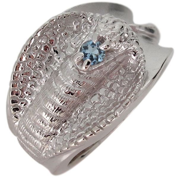 指輪 メンズ プラチナ コブラ ヘビ 蛇 リング アクアマリンサンタマリア