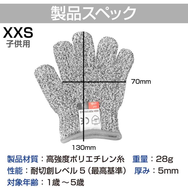 | 商品名 | 防刃手袋 XXSサイズ 子供用 |