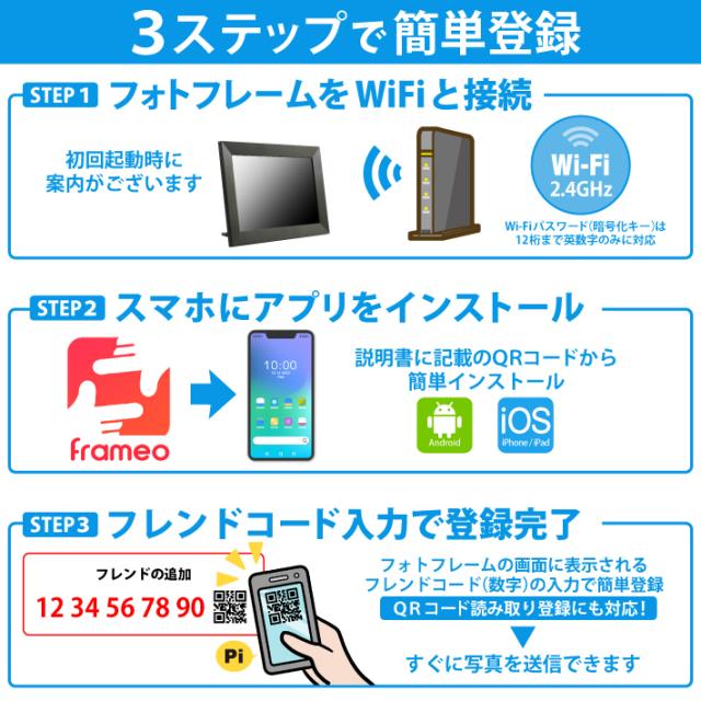 ・専用アプリ「Frameo」を使用します。簡単な設定ですぐにお使いいただけます。