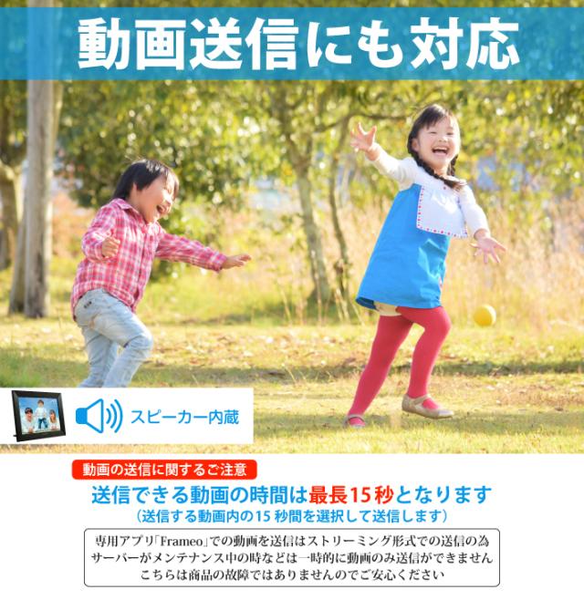 | 注意 | ・アプリから写真を送信する場合、本製品が2.4GHzのWiFiに接続されている必要があります。 ・専用アプリ「Frameo」からフォトフレームに動画を送信する際は、ストリーミング再生形式での送信となり、メーカーのサーバーがメンテナンス中などの場合、動画のみ送信できません。 こちらは商品の故障ではありませんのでご安心ください。 |