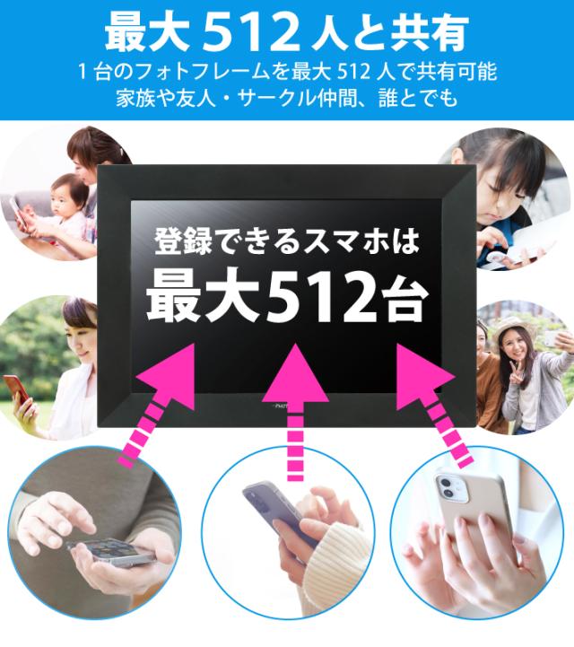 ・家族や友人の複数のスマートフォンと最大512台共有可能