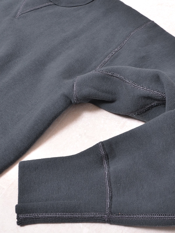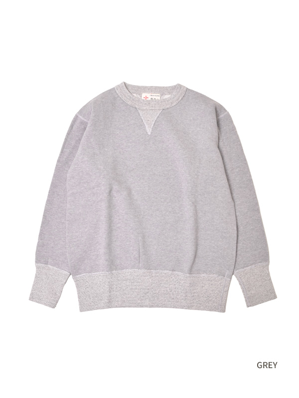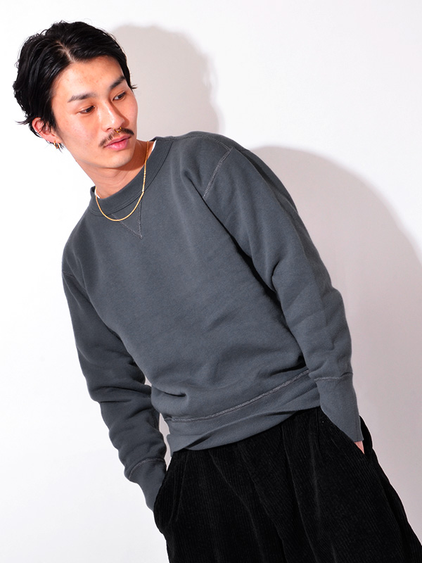 Two Moon V-Gusset Set-in Sleeve Sweats トゥームーン 両V 丸銅 スウェットシャツ 【Two Moon(トゥームーン)】 現代ではその形の変わらないものに対して毎日新しいデザインが生み出され、それをファッションと呼んでいる。 私たちはファッションではなく、毎日を生きていくための「着る道具」をつくりたいと思った。 そこには虚飾やエゴはなく、生活の中に必要な「ハレとケ」それぞれの服ができた。 [Two Moon]の名に恥じないものができたと思っている。 シンプルな無地のスウェットにして、着こなしや季節によって色違いを集めたくなるスウェットシャツ。 ディテールは、ヴィンテージ・タイプの旧式の吊編み機でゆっくり織り上げた丸胴ボディ、 本格はめこみ式の両V、長リブ、セットインスリーブ、主要縫製部位フラットシーマー縫製とヴィンテージディテール。 そのまま復刻をした場合ヴィンテージのスウェットにありがちな身幅やアームホールが広く かがむと背中が見えるくらい短くなった着丈のものが多く、現代のファッションには合わせにくい欠点がありますが、 そこを修正しやや細身のシルエットやアームホールでタイトなアウターの下に重ね着しても ごろつかずに快適に着ることができ、着丈も非常にバランス良く出来ています。 | ||||||||||||||||||||||||