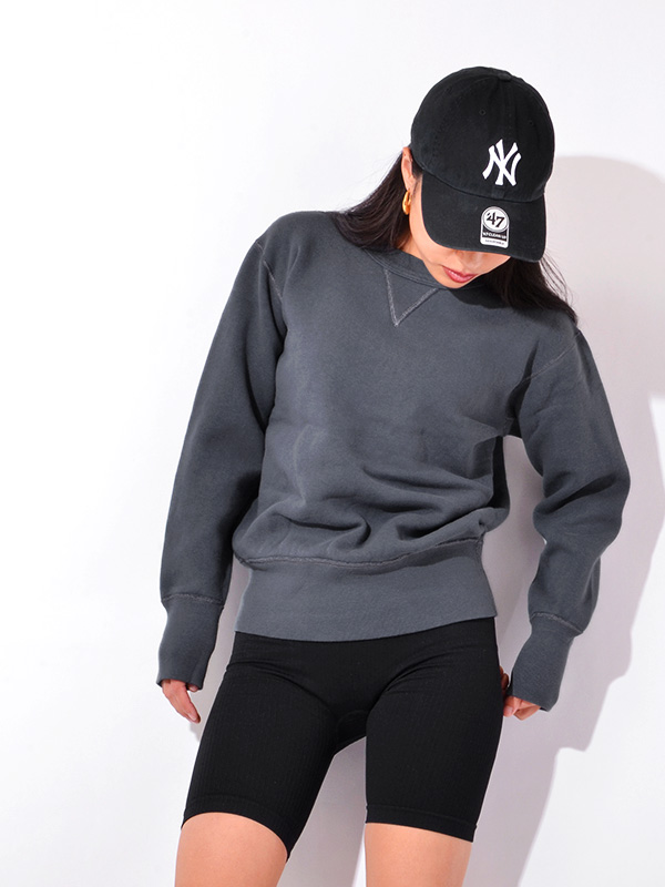 シンプルな無地のスウェットにして、着こなしや季節によって色違いを集めたくなるスウェットシャツ。