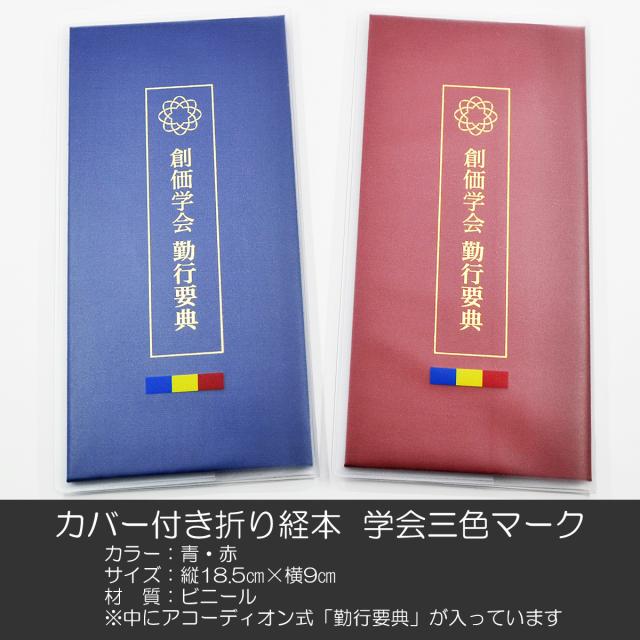 創価学会カバー付き折り経本079/学会三色マーク入りクリアー/創価学会勤行要典/青・赤/ビニール/アコーディオン型/SGI・SOKA